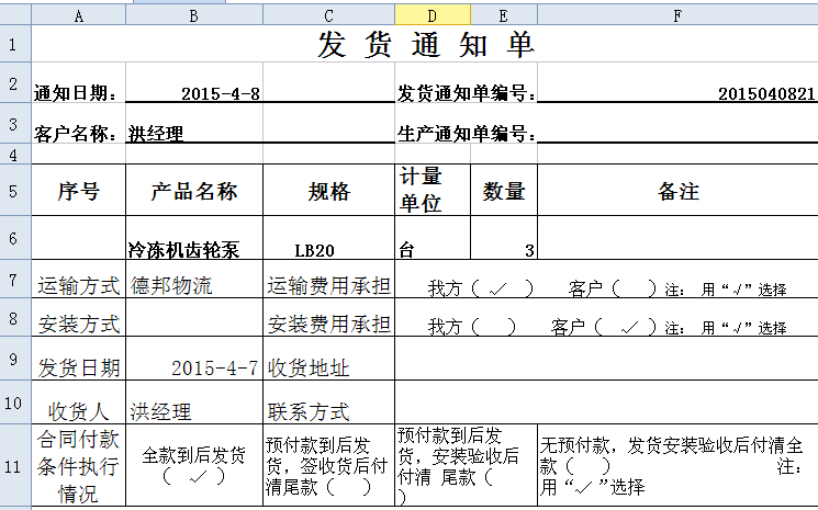 武漢洪經理訂購的LB冷凍機齒輪泵昨天已發貨。以下是明細發貨通知單: