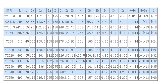 泰盛泵閥提供_全的YCB圓弧齒輪泵各型號的安裝尺寸及重量,YCB圓弧齒輪泵齒輪采用雙圓弧正弦曲線齒形制造。它與漸開線齒輪相比_突出的優(yōu)點是齒輪嚙合過程中齒廓面沒有相對滑動,所以齒面無磨損,運轉(zhuǎn)平穩(wěn),無因液現(xiàn)象,噪音低、壽命長、效率高。YCB圓弧齒輪泵主要有齒輪、軸、泵體、泵蓋、軸承套、軸端密封等組成。齒輪采用雙圓弧正弦曲線齒形制造。它與漸開線齒輪相比_突出的優(yōu)點是齒輪嚙合過程中齒廓面沒有相對滑動,所以齒面無磨損,運轉(zhuǎn)平穩(wěn),無因液現(xiàn)象,噪音低、壽命長、效率高。該泵擺脫了傳統(tǒng)設(shè)計的束縛,使得齒輪泵在設(shè)計、生產(chǎn)和使用上進(jìn)入了一個新的領(lǐng)域。